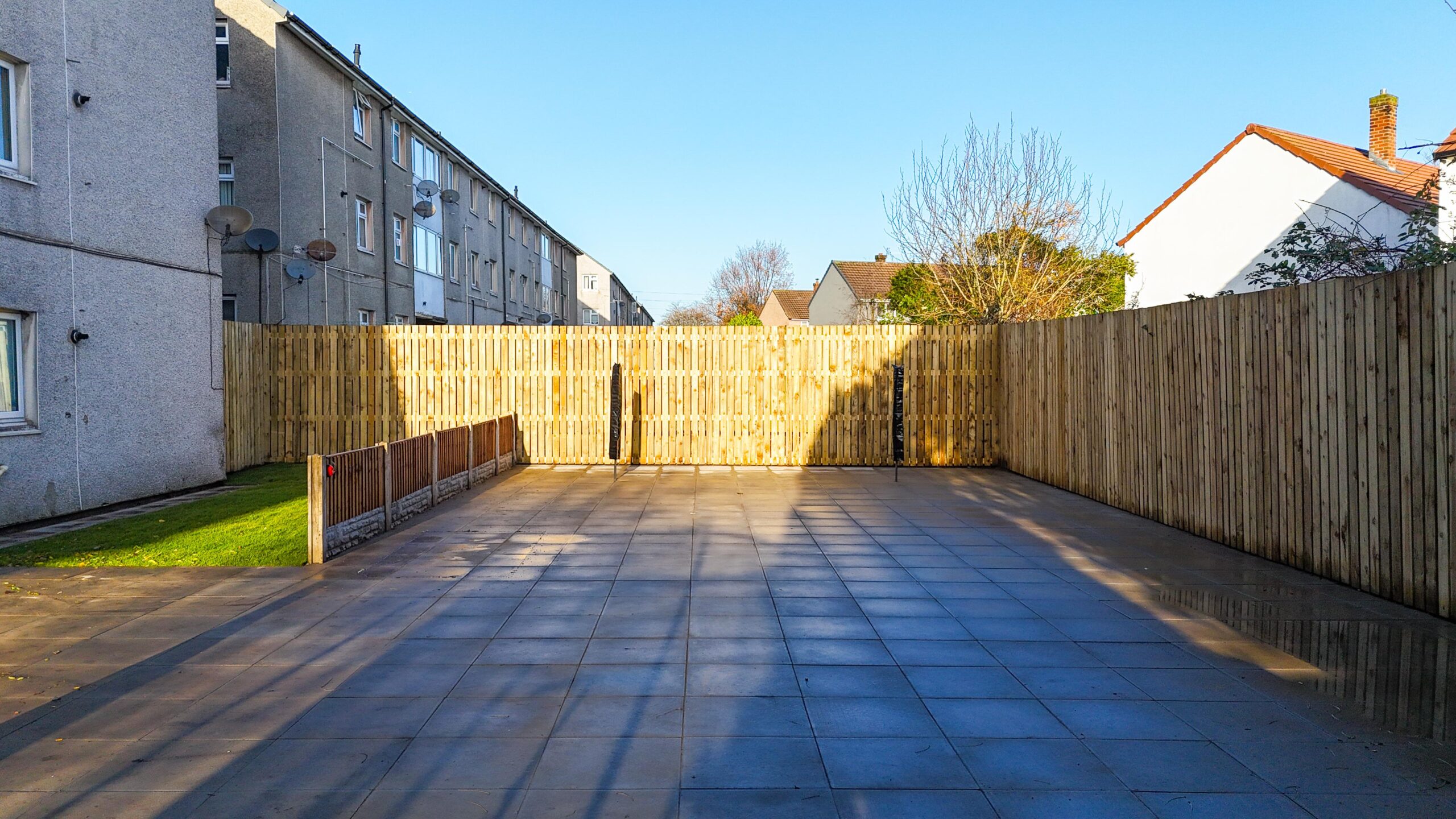 As part of the works, existing grassed areas were fully reinstated and improved, ensuring a balanced external environment that combines hardwearing surfaces with well-maintained green spaces. The overall layout of the area was carefully considered and improved to maximise accessibility, safety, and ease of maintenance.